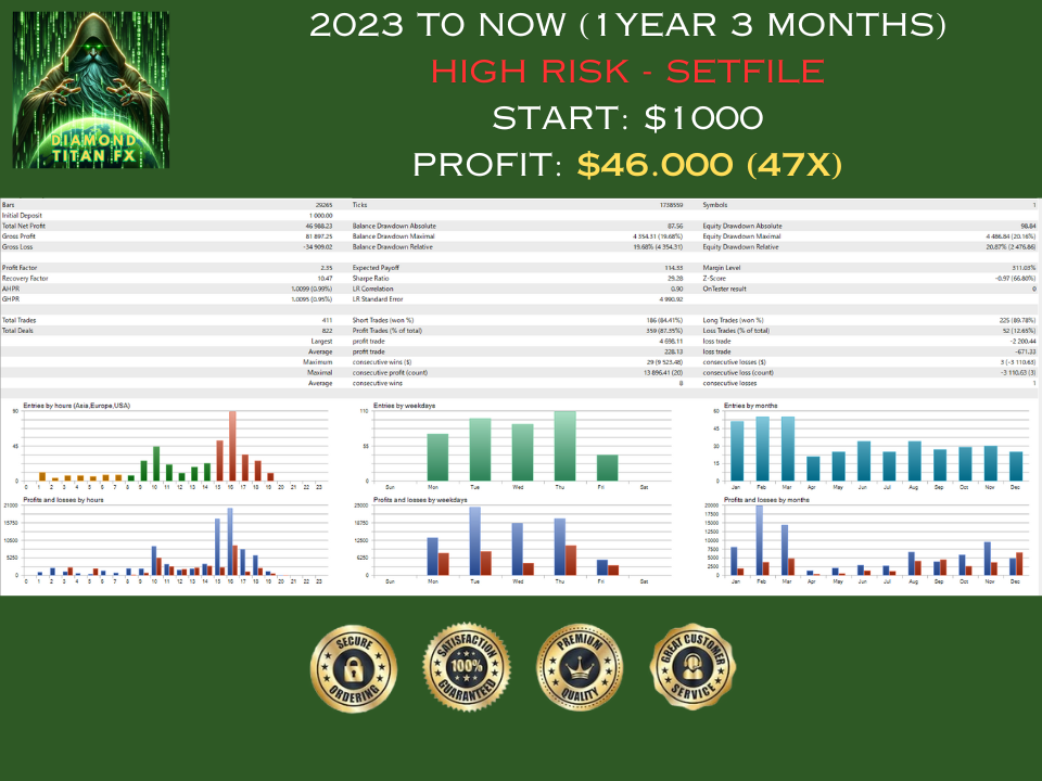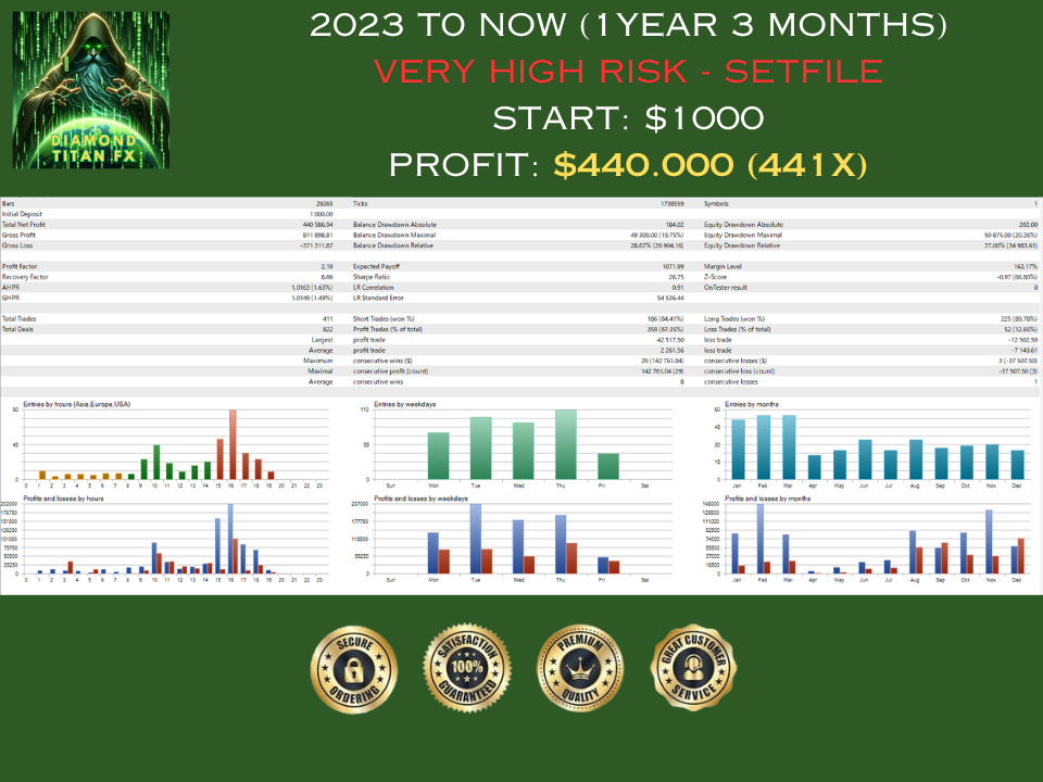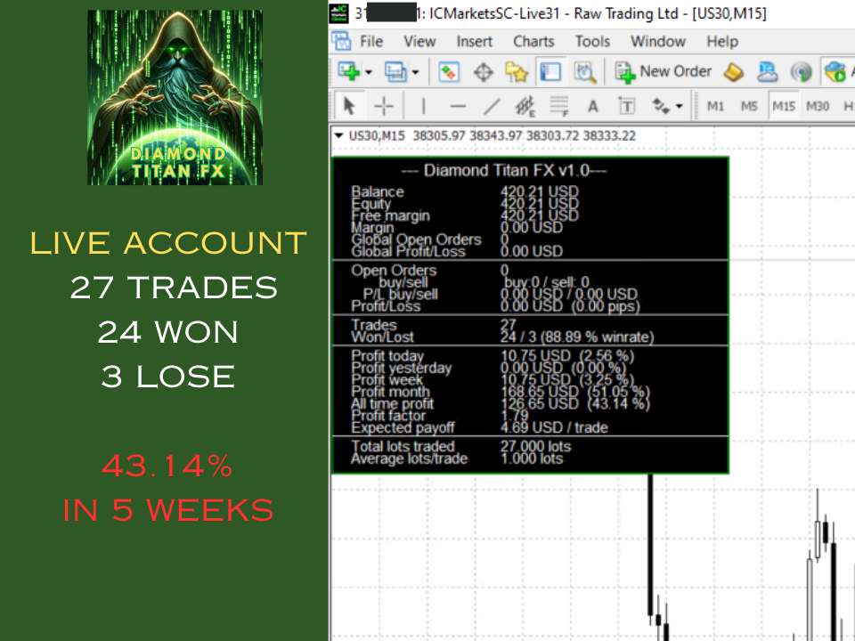 Diamond Titan FX EA is a next-generation scalping robot developed by a highly experienced team in trading and coding. It is designed for scalping on one of the most popular Wall Street indices in the United States (US30).